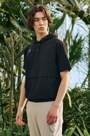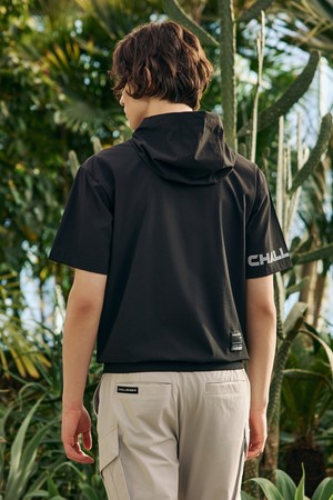 Men's Lightweight Logo Hooded Woven Top 남성 빅로고 프린트 후드 반팔 우븐탑