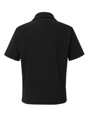 여성 트리코트 배색 디테일 오픈 카라 반팔티 블랙