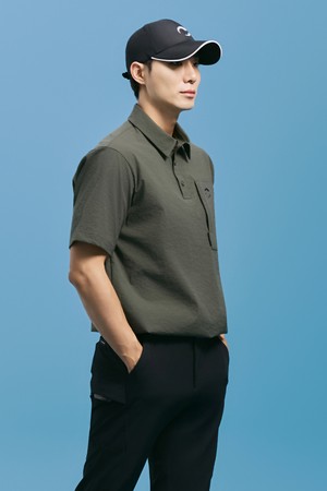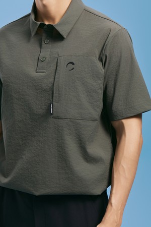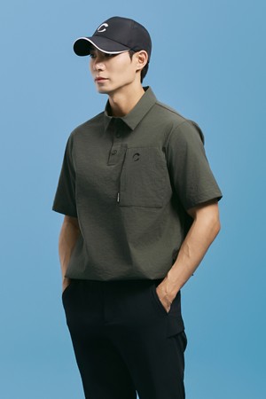 남성 크링클 스트레치 포켓 디테일 카라 반팔 우븐탑 카키