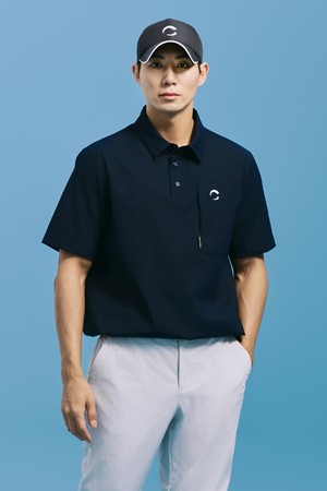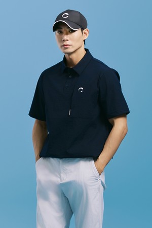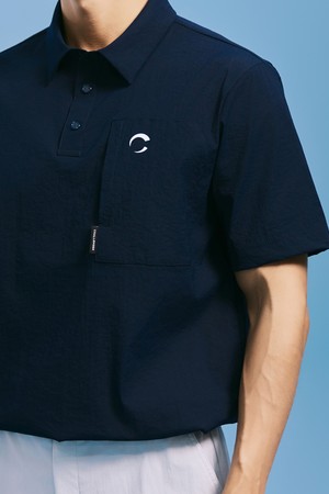 남성 크링클 스트레치 포켓 디테일 카라 반팔 우븐탑 네이비