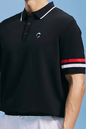 남성 소매 포인트 메쉬 카라 니트 풀오버 블랙