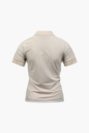 - 냉감 및 기능성 나일론 소재를 사용한 ESSENTIAL 베이직 세미 하이넥 슬림핏 반팔 티셔츠.