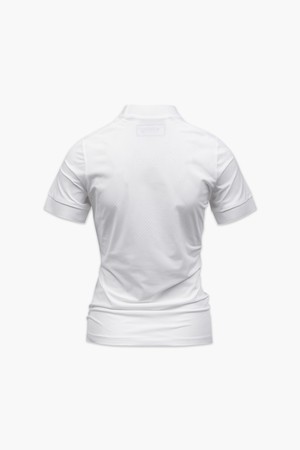 - 냉감 및 기능성 나일론 소재를 사용한 ESSENTIAL 베이직 세미 하이넥 슬림핏 반팔 티셔츠.