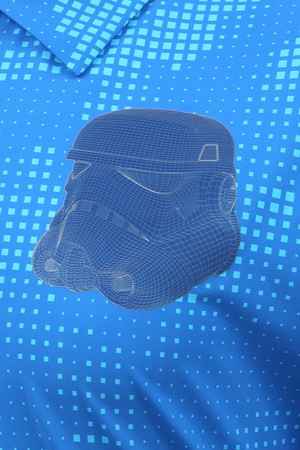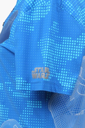 - 스타워즈 스톰트루퍼 프린트가 강조된 콜라보레이션 폴리 티셔츠.