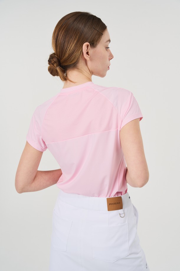 라이트 쿨 메쉬 기능성 반팔 탑 _ 라이트핑크