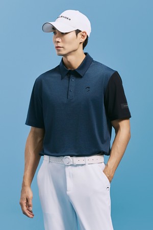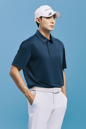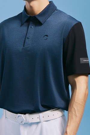 남성 나일론 폴리 소매 배색 카라 반팔 티셔츠 네이비