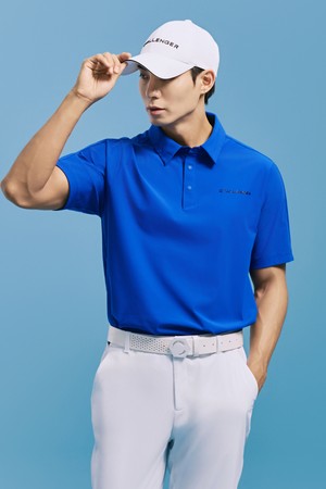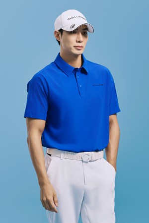 남성 등판 파이핑 트리코트 카라 반팔 티셔츠 블루