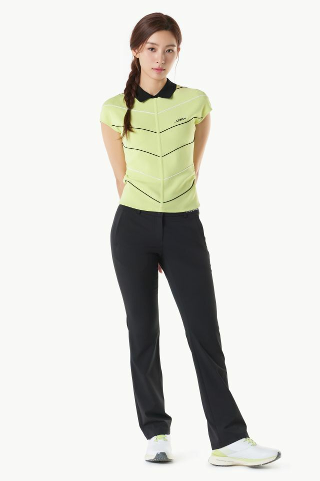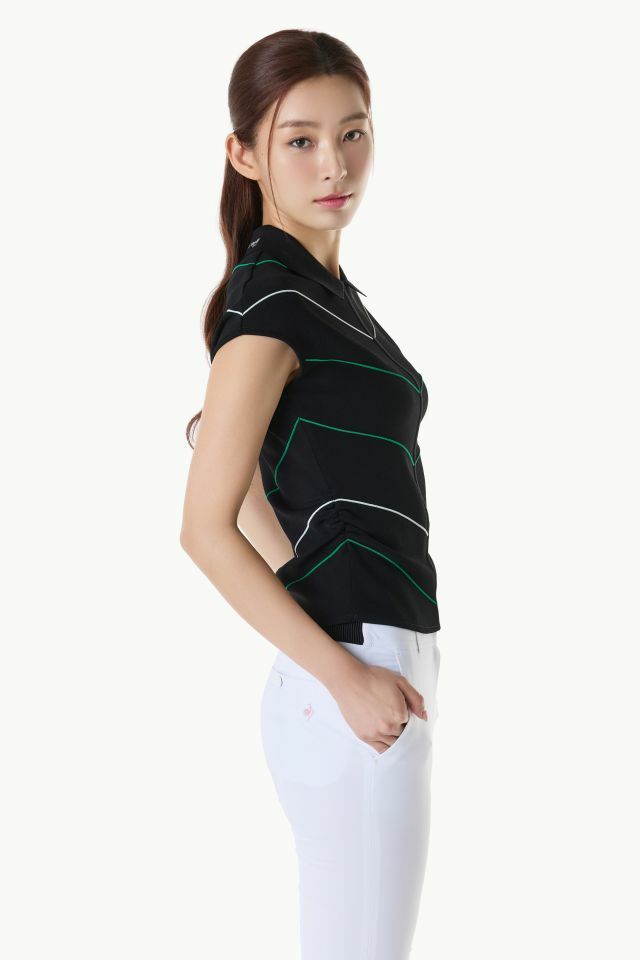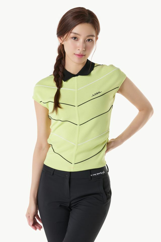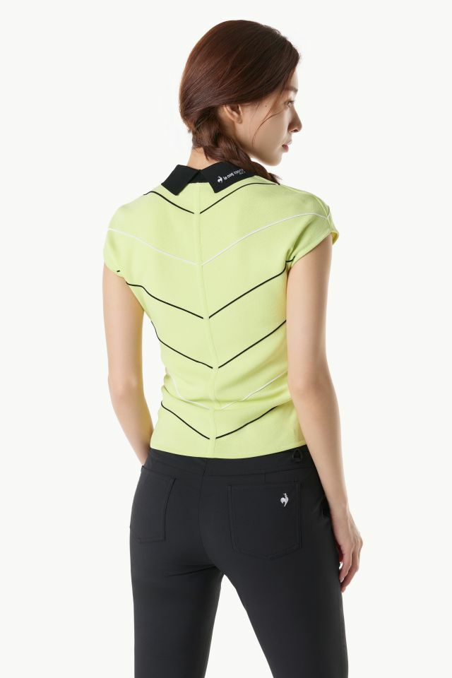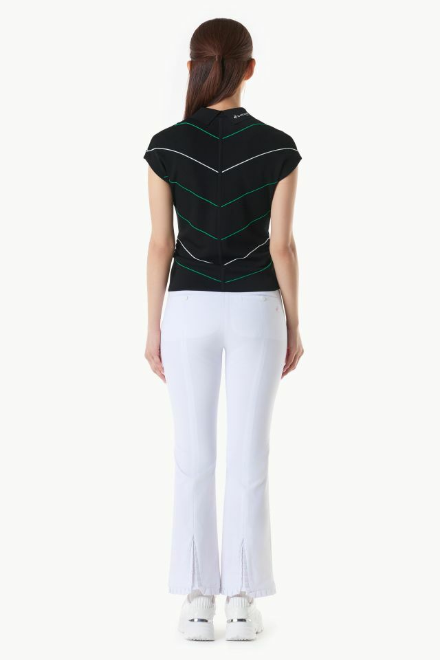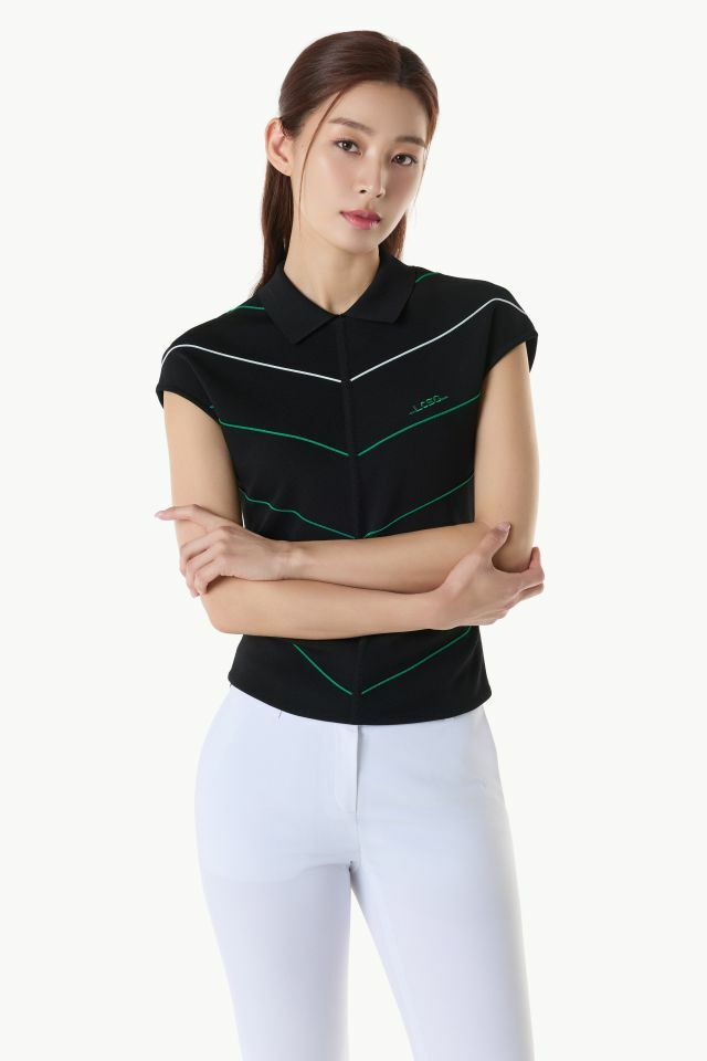 여성 라인 배색 슬리브리스 카라 스웨터 (GQ122LKP34)