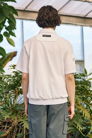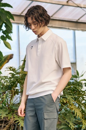 남성 PQ 블루종 래글런 절개 라인 반팔 카라 티셔츠 화이트