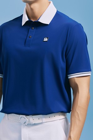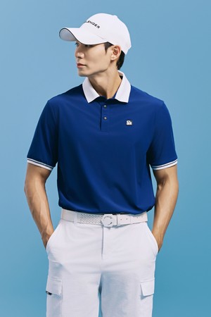 남성 에센셜 트리코트 배색 포인트 카라 반팔 티셔츠 다크블루