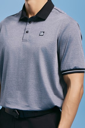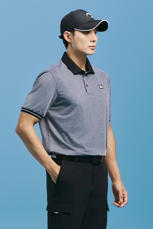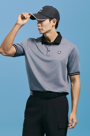 남성 에센셜 트리코트 배색 포인트 카라 반팔 티셔츠 멜란지그레이
