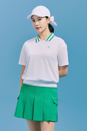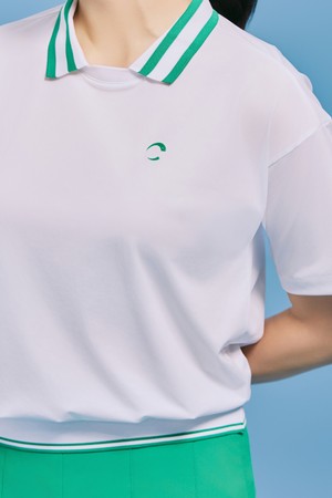 여성 쿨 터치 배색 립 디테일 카라 반팔 티셔츠 화이트