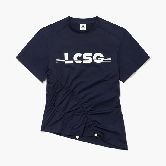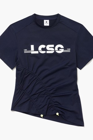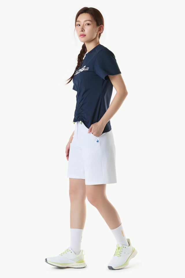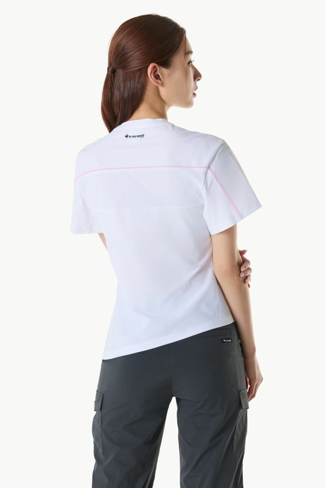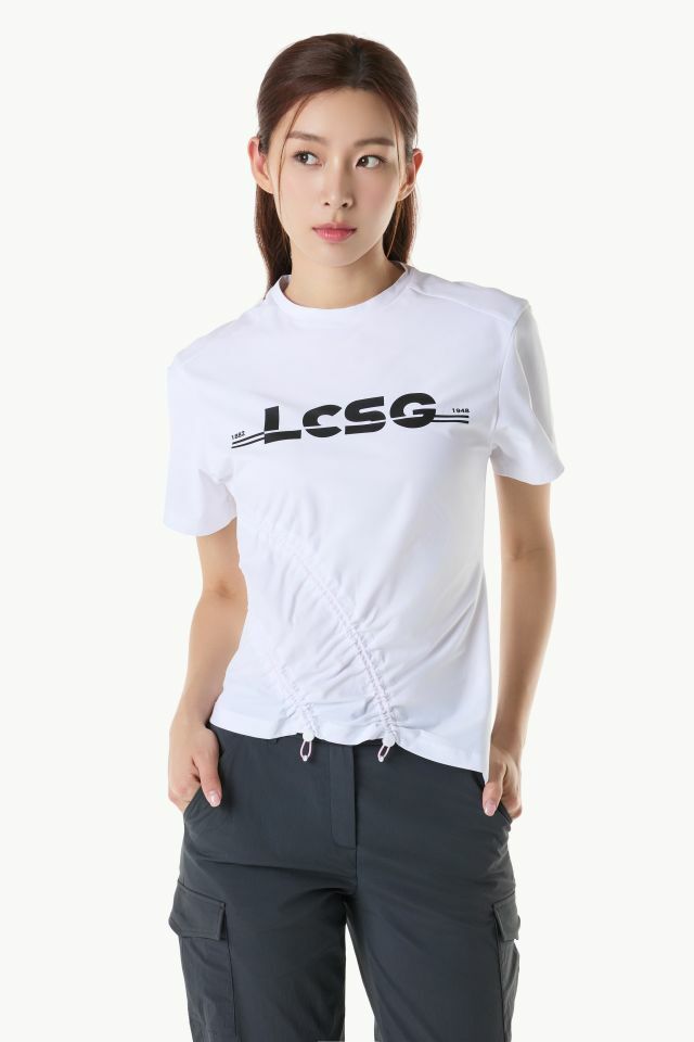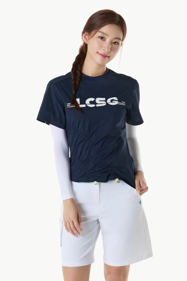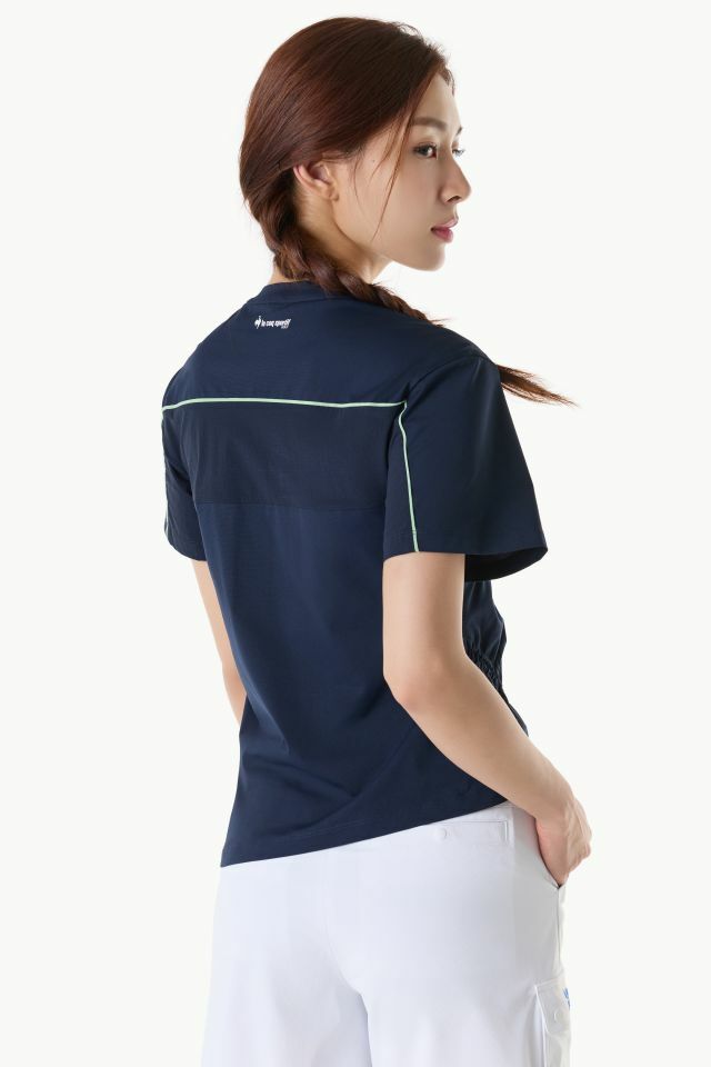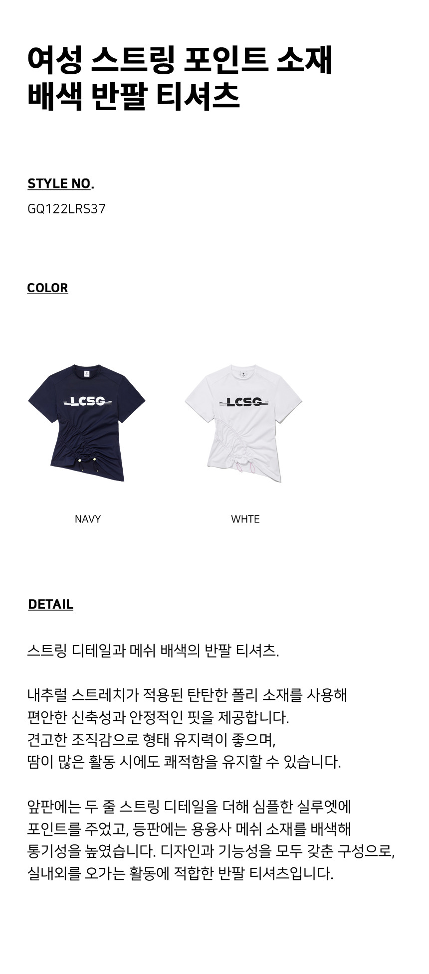 여성 스트링 포인트 소재 배색 반팔 티셔츠 (GQ122LRS37)
