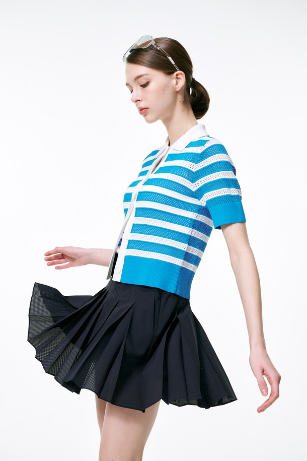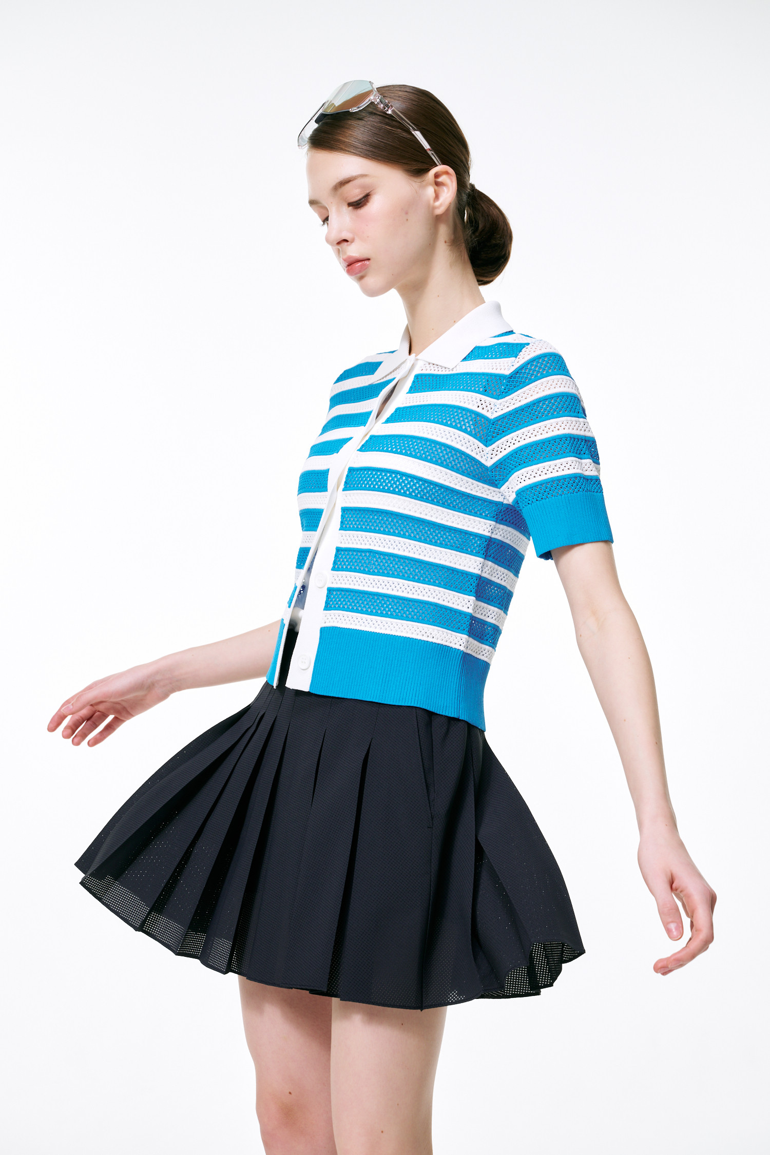 펀칭으로 통기성이 좋으며 땀에도 금방 마르는 기능성 소재로 된 플리츠 스커트 입니다