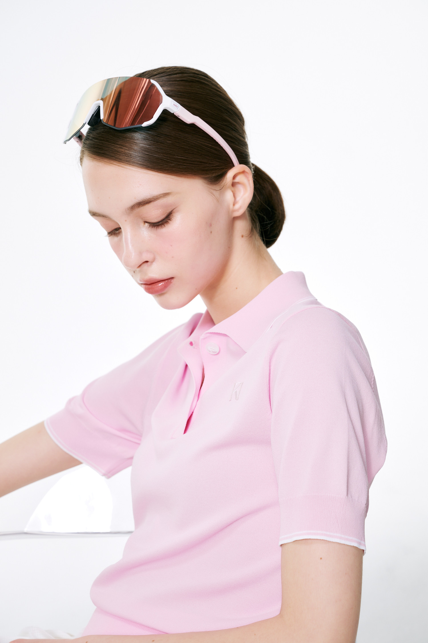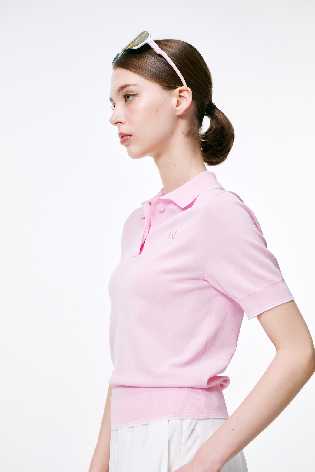 플레인 조직의 컬러팁 카라 풀오버 입니다