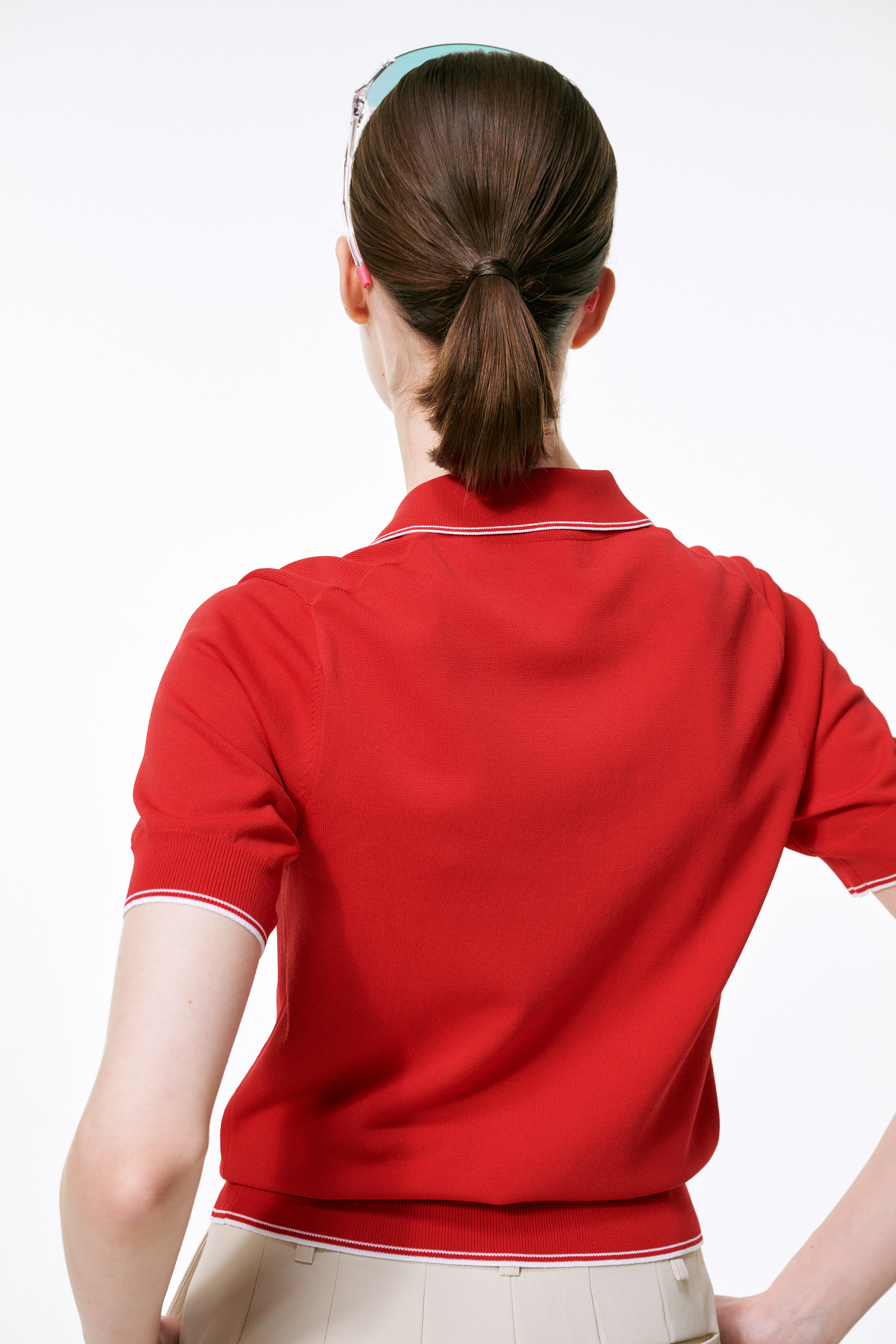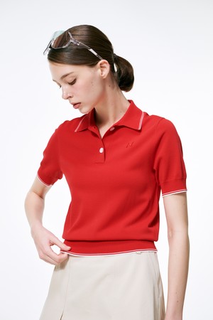 플레인 조직의 컬러팁 카라 풀오버 입니다