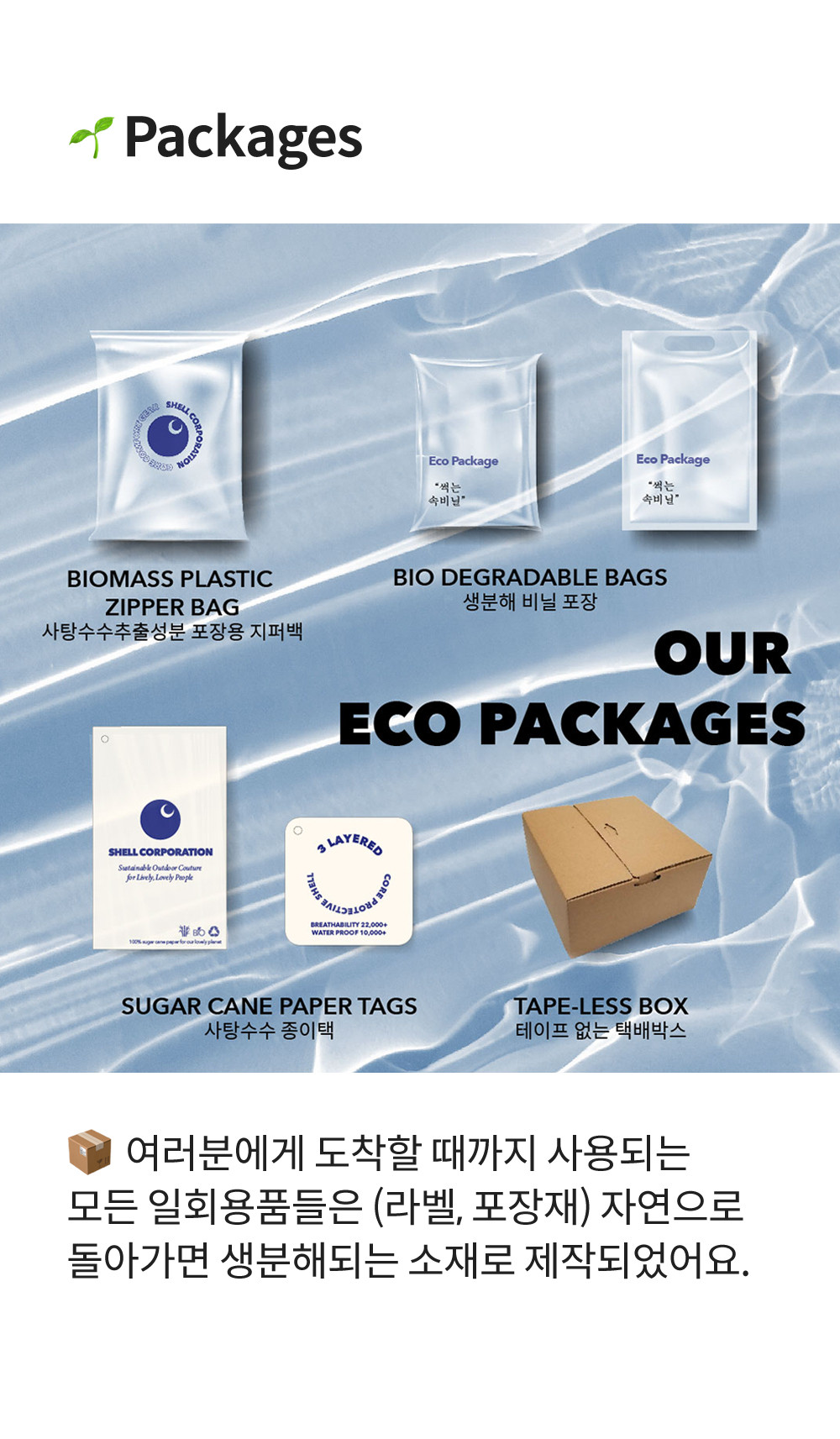 | 세탁방법 및 취급시 주의사항 | 반드시 찬물에 세탁하고, 산소 표백제 및 염화 세제 사용을 금하며 중성세제로 세탁해야함. 건조기 사용 및 드라이크리닝 사용을 제한함. 섬유유연제 사용은 제품의 기능성을 저해할 수 있음. 방수 코팅은 사용기간에 따라 자연스럽게 약해지며 이는 자연스러운 현상임. |