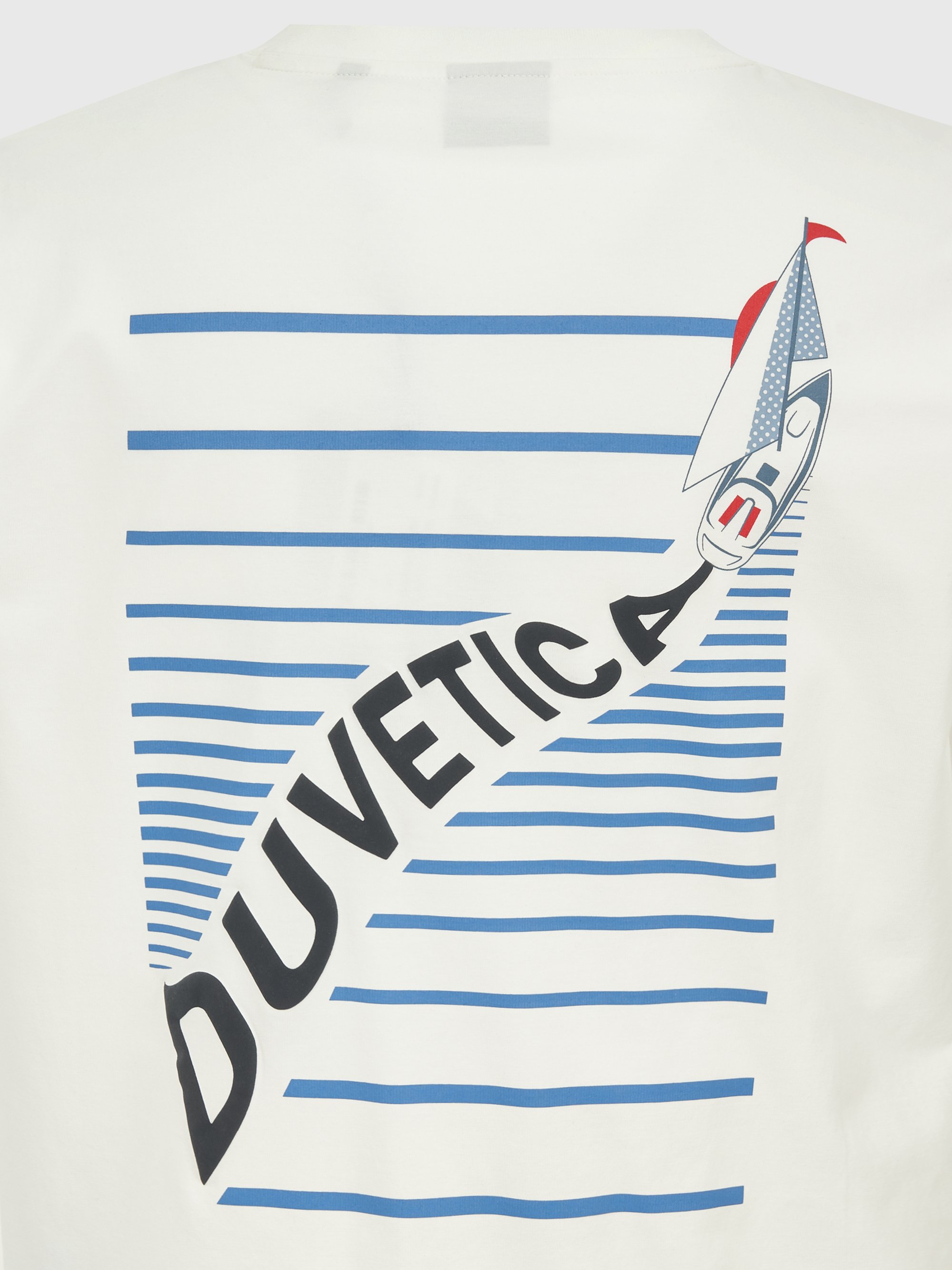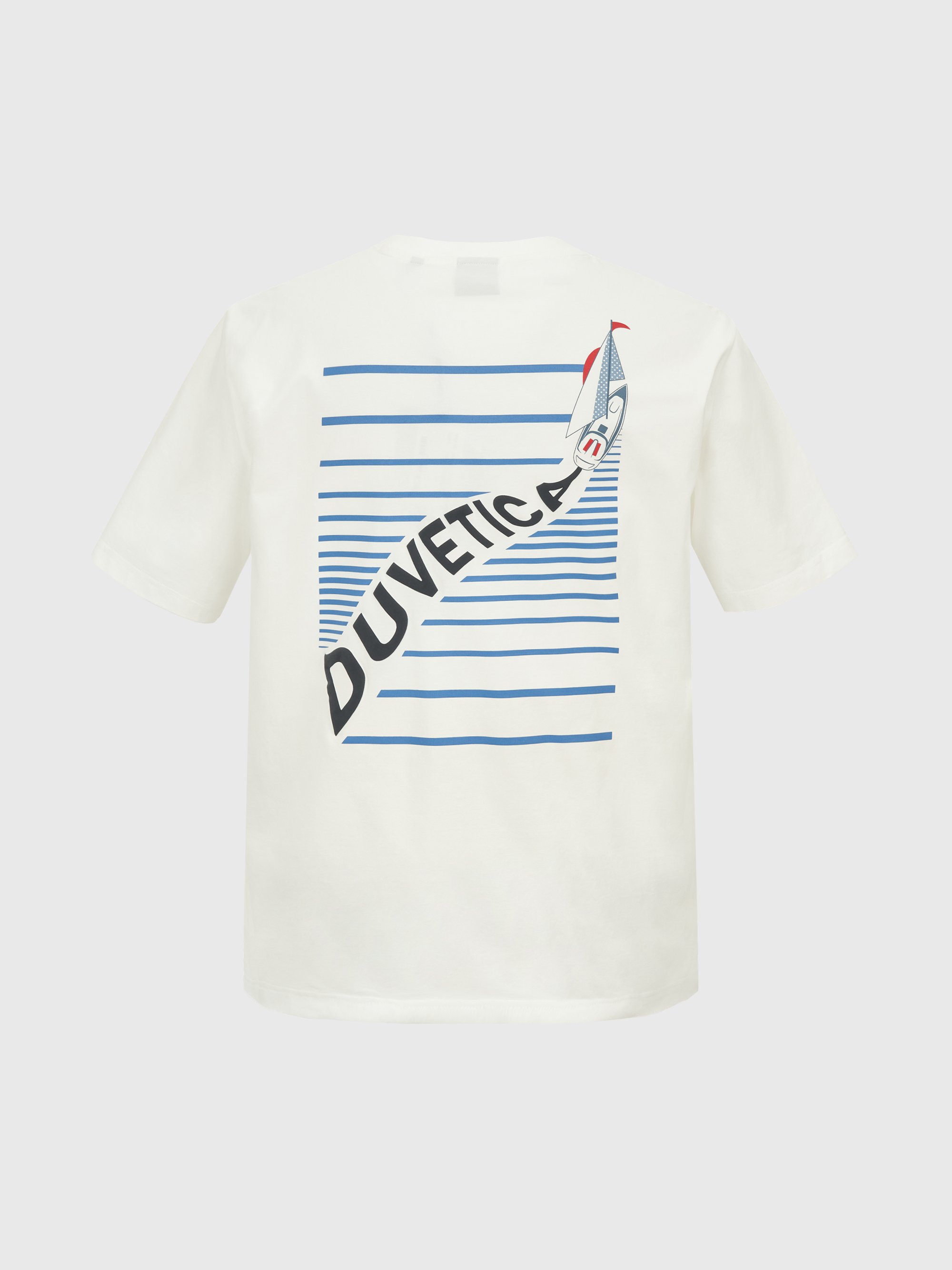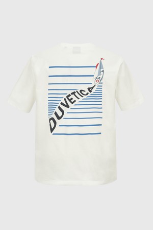 - 보트와 파도를 형상화한 스트라이프 그래픽 등판 프린트로 여름 시즌 입기 좋은 티셔츠