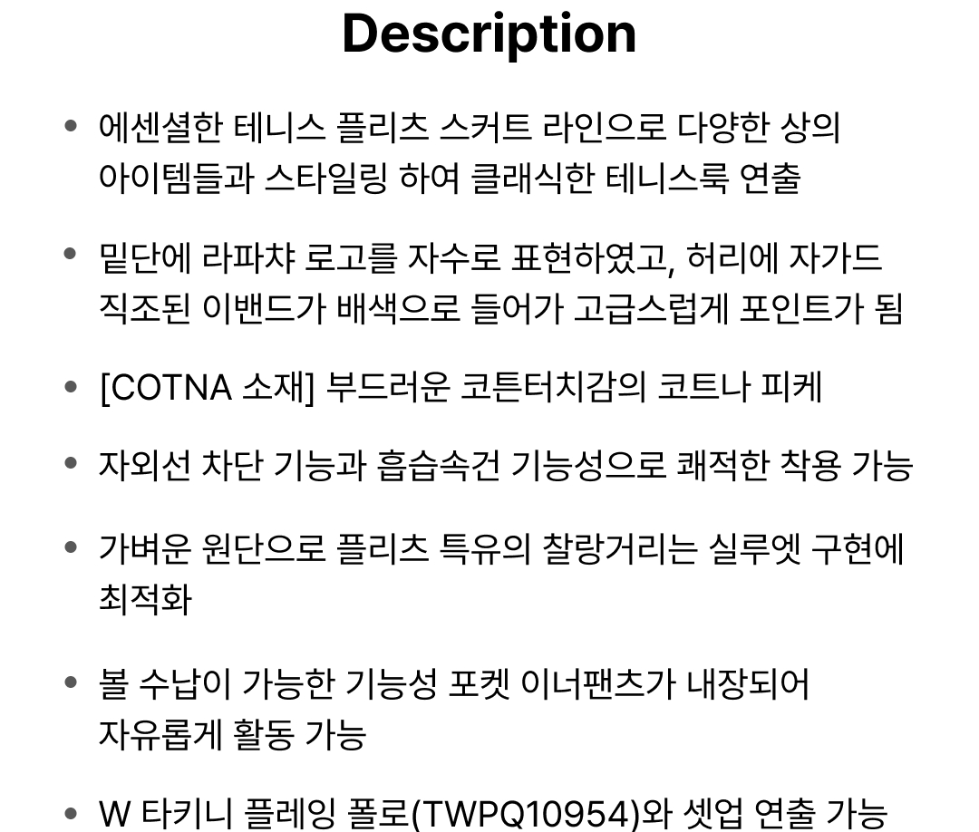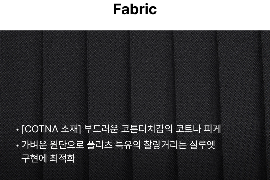 | 소재 | 겉감 폴리에스터96% 겉감 폴리우레탄4% 안감 폴리에스터83% 안감 폴리우레탄17% |