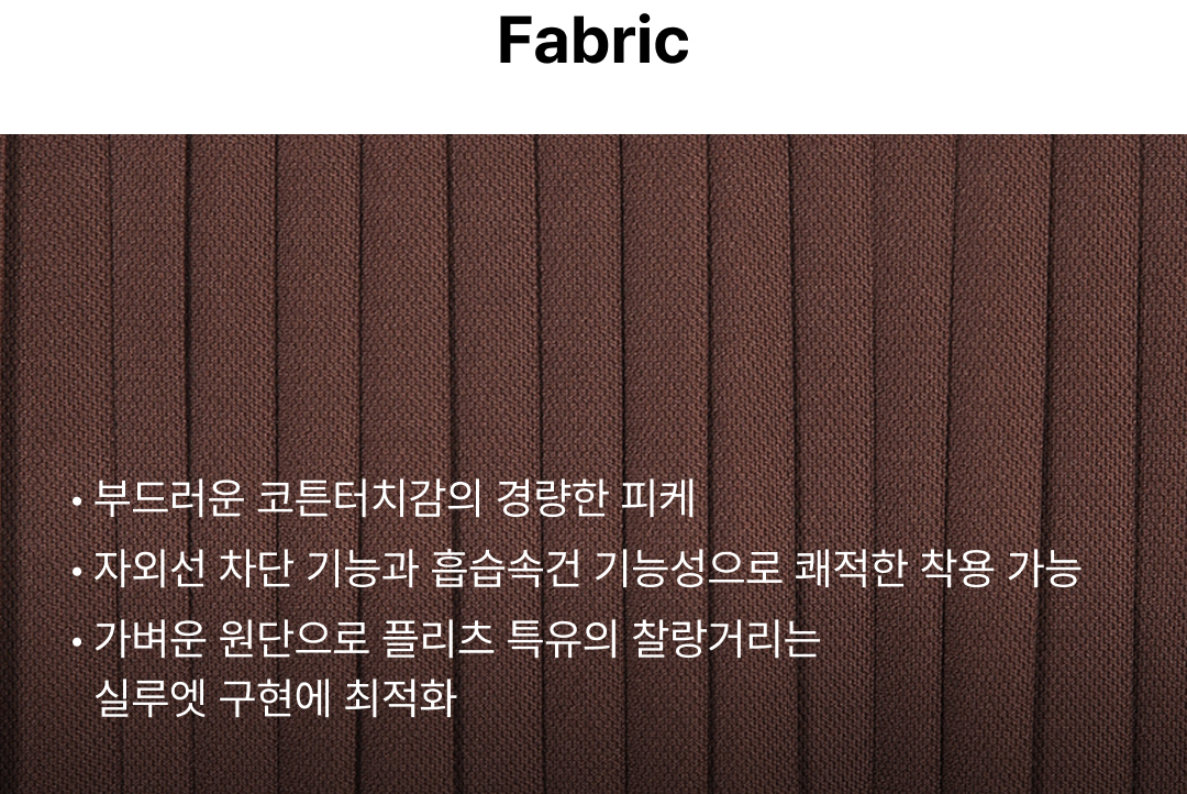 | 소재 | 겉감 폴리에스터100% 안감 폴리에스터83% 안감 폴리우레탄17% |