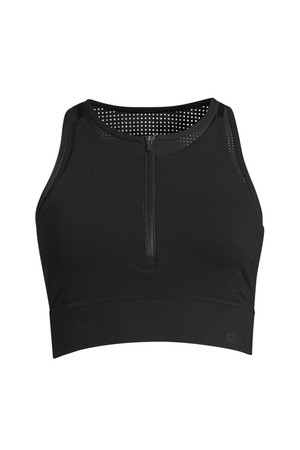 프론트 지퍼와 감각적인 컬러블록 디자인이 돋보이는 하이테크 스포츠브라.