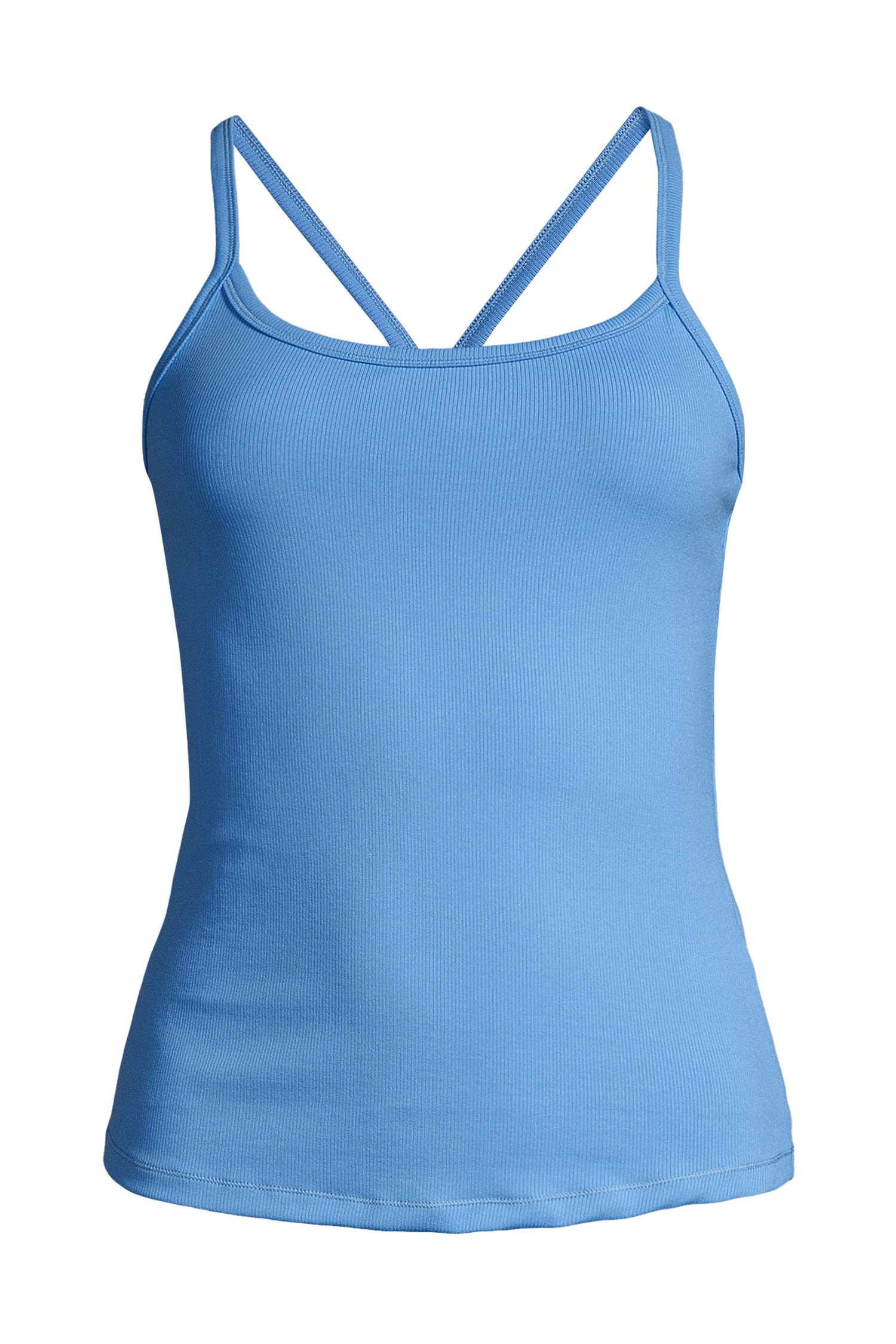 얇은 스트랩과 립 조직이 돋보이는 미니멀 탱크탑.