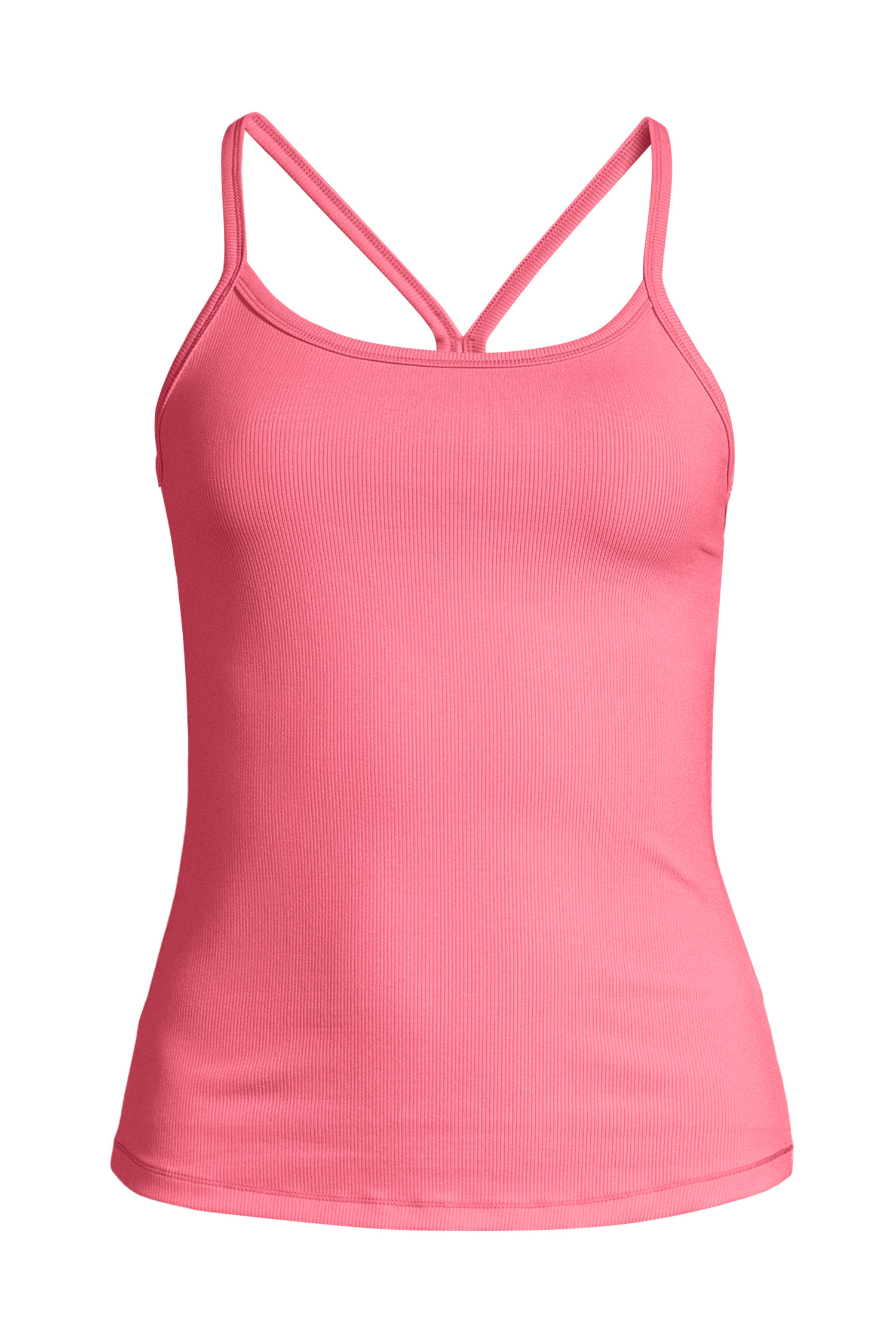 얇은 스트랩과 립 조직이 돋보이는 미니멀 탱크탑.