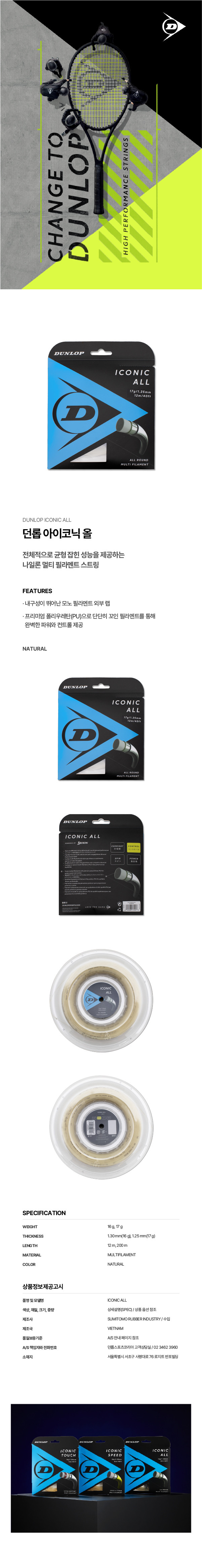 | 품명 및 모델명 | ICONIC ALL TENNIS STRING(12m) |