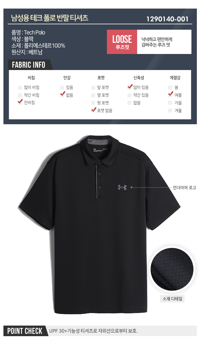 [언더아머] 남성용 테크 폴로 반팔티 1290140_001