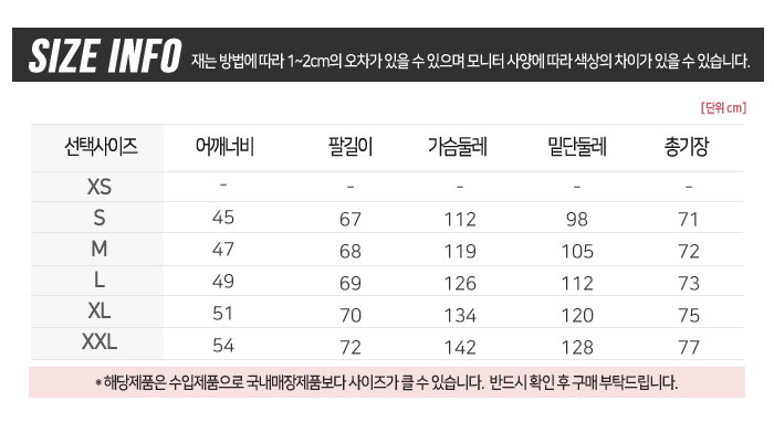| 세탁방법 및 취급시 주의사항 | 땀으로 인한 부분 탈색이 발생할수있으니 제품이 땀으로 젖었을시 즉시 세탁하여 주시기 바랍니다.제품특성에 다라 올이 튀는 현상이 발생할수 있으니 주의 하시기 바랍니다.세탁전 주의사항은 제품에 붙은 안내 택을 반드시 참고하여 주시기 바랍니다.품질 경영 촉진법에 의한 품질 표시를 꼭 참조하시어 세탁하십시오 |