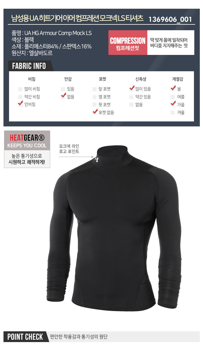 [언더아머] 남성용 히트기어 아머 컴프레션 모크넥 LS 티셔츠 1369606_001
