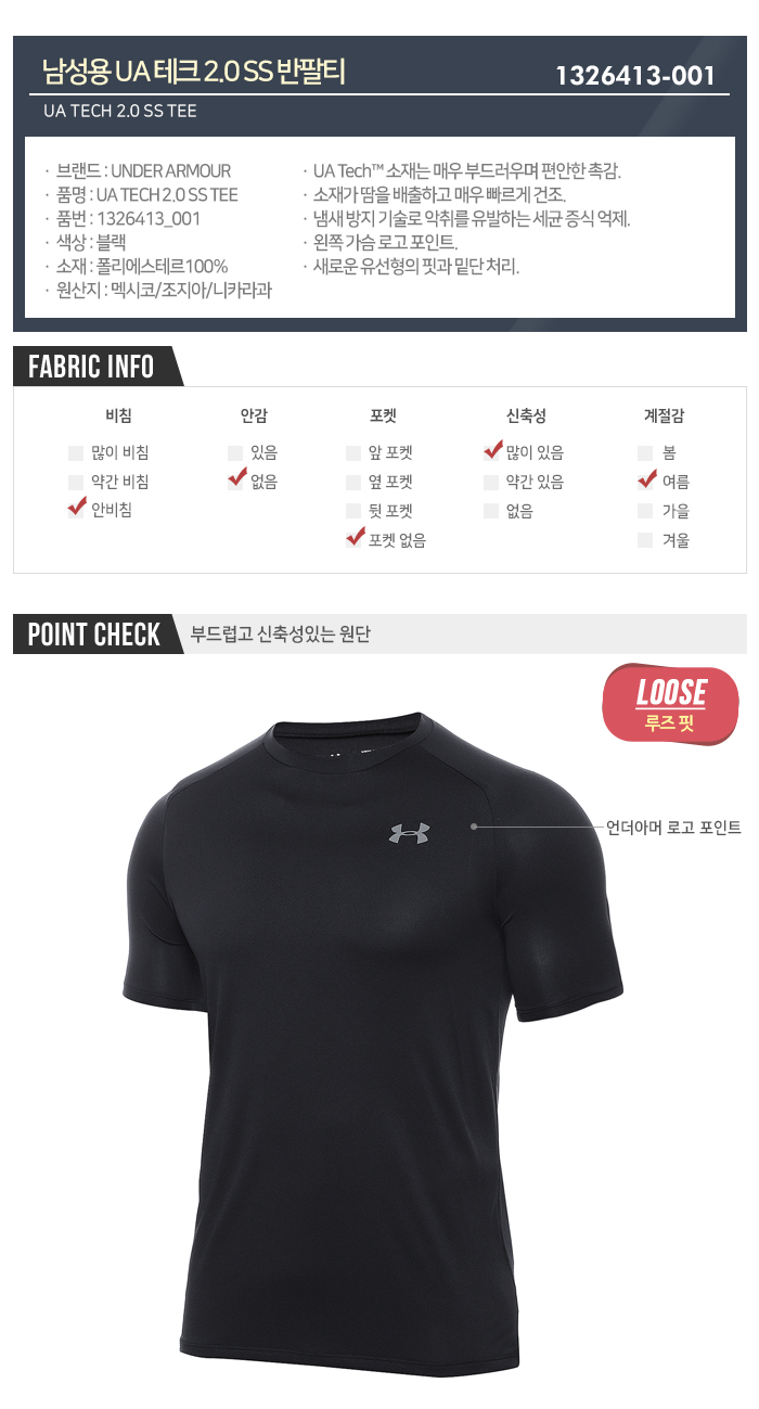 [언더아머] 남성용 테크 2.0 SS 반팔티 1326413_001
