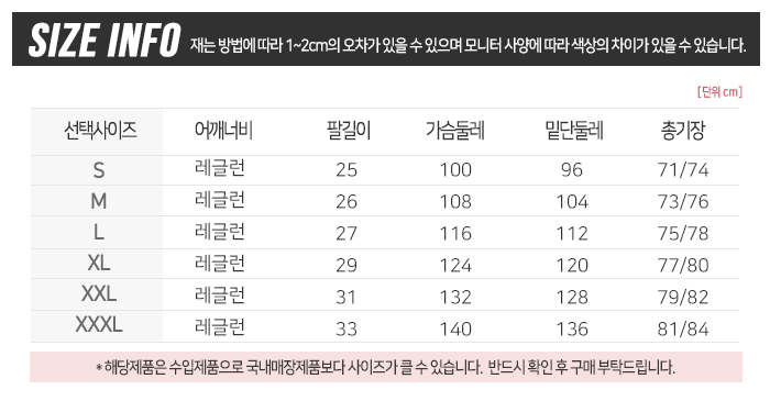 | 세탁방법 및 취급시 주의사항 | 땀으로 인한 부분 탈색이 발생할수있으니 제품이 땀으로 젖었을시 즉시 세탁하여 주시기 바랍니다.제품특성에 다라 올이 튀는 현상이 발생할수 있으니 주의 하시기 바랍니다.세탁전 주의사항은 제품에 붙은 안내 택을 반드시 참고하여 주시기 바랍니다.품질 경영 촉진법에 의한 품질 표시를 꼭 참조하시어 세탁하십시오 |