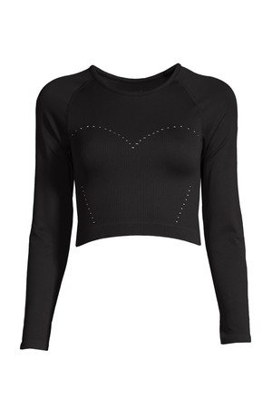 긴 소매의 심리스 크롭탑으로, 하트 형태의 세로 골지 짜임이 몸매를 예쁘게 잡아주며, 포인트 펀칭 디테일이 더해져 여성스럽고 세련된 느낌을 줍니다.