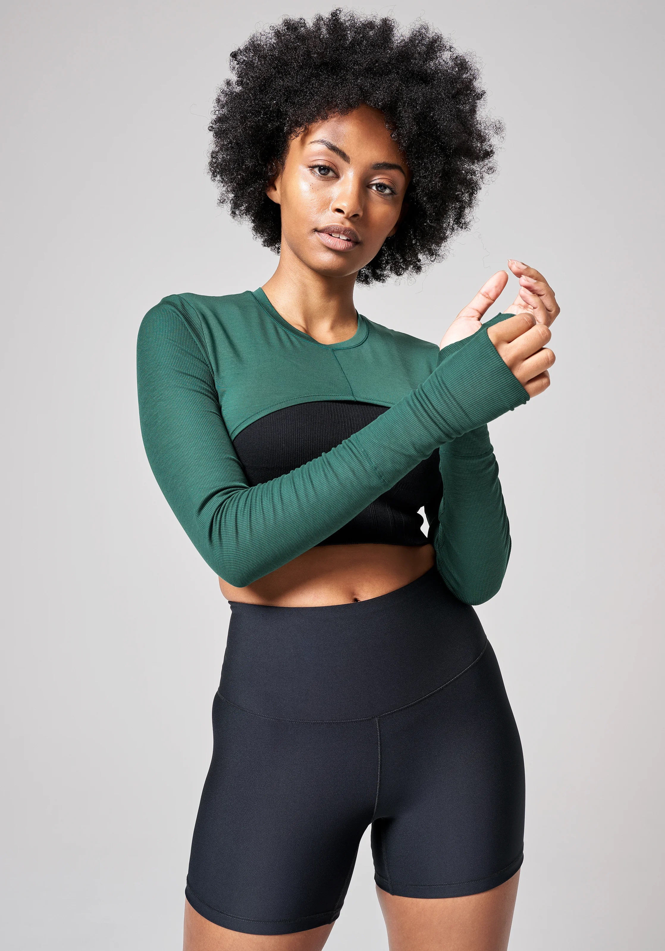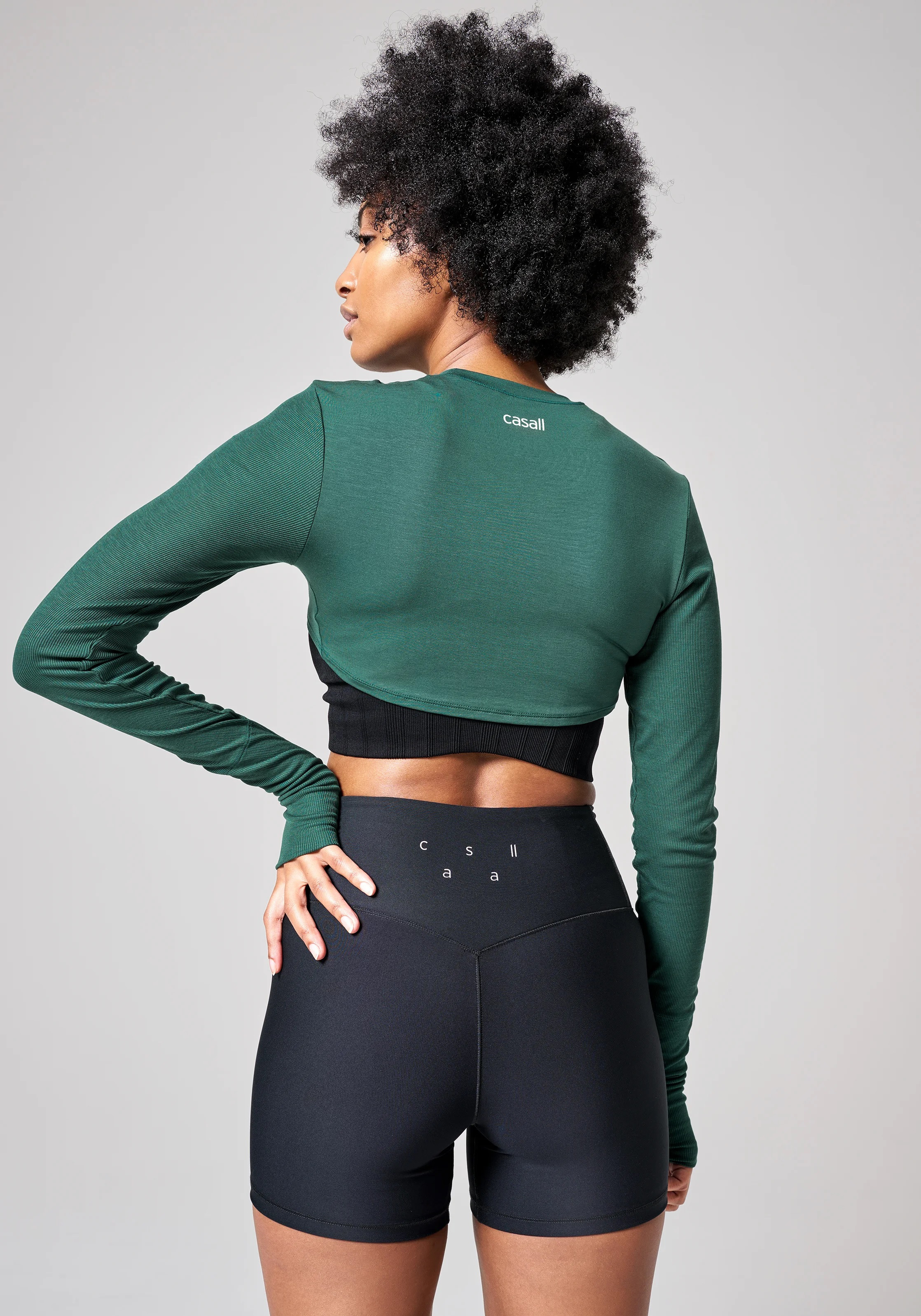 크롭 기장의 골지 긴소매 탑은 가볍고 부드러워 일상에서 활용하기 좋은 필수 아이템입니다.