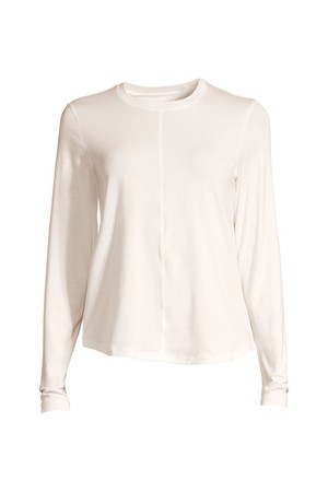 앞면의 절개선과 약간 둥근 밑단이 더해져, 클래식한 크루넥 디자인에 자연스러운 실루엣을 완성해 줍니다.