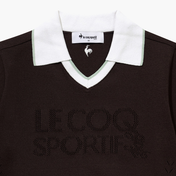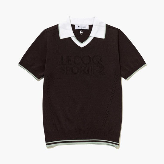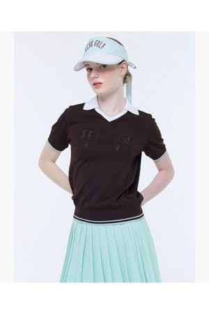 여성 레터링 조직 반팔 카라 스웨터 (GQ322LKP71)