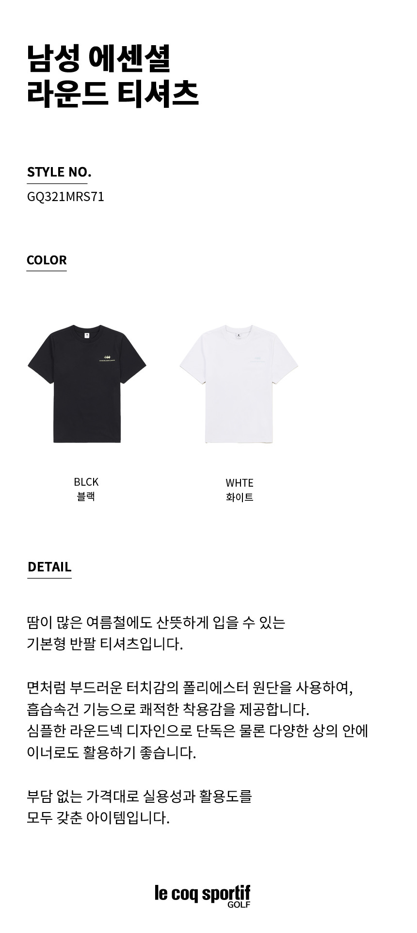 남성 에센셜 라운드 티셔츠 (GQ321MRS71)