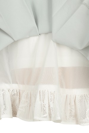 - 플리츠 속 레이스 메쉬 소재로 페미닌 무드의 디자인
