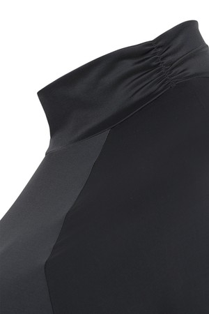 - 하이넥과 소매 부분 셔링 디자인 포인트