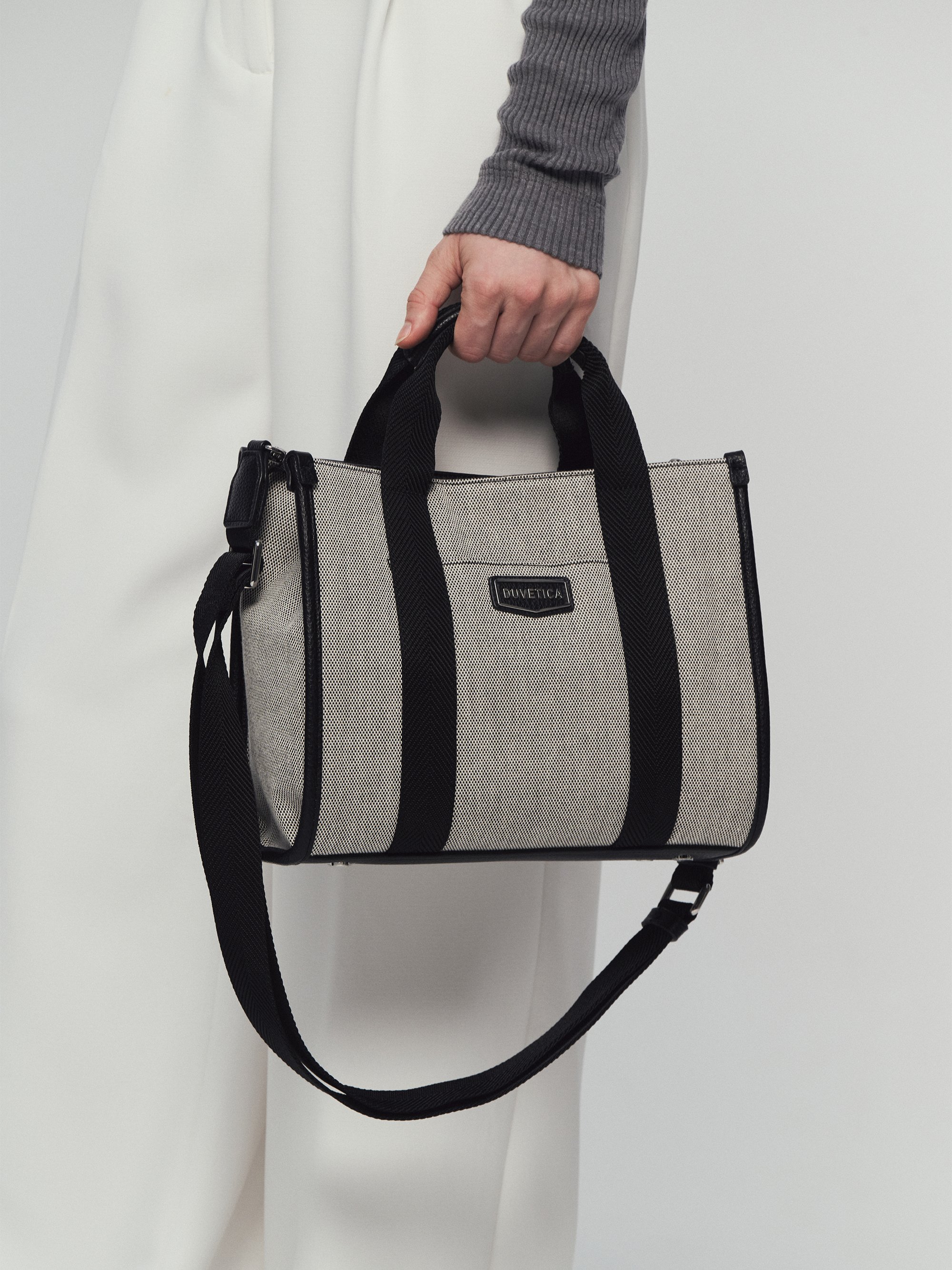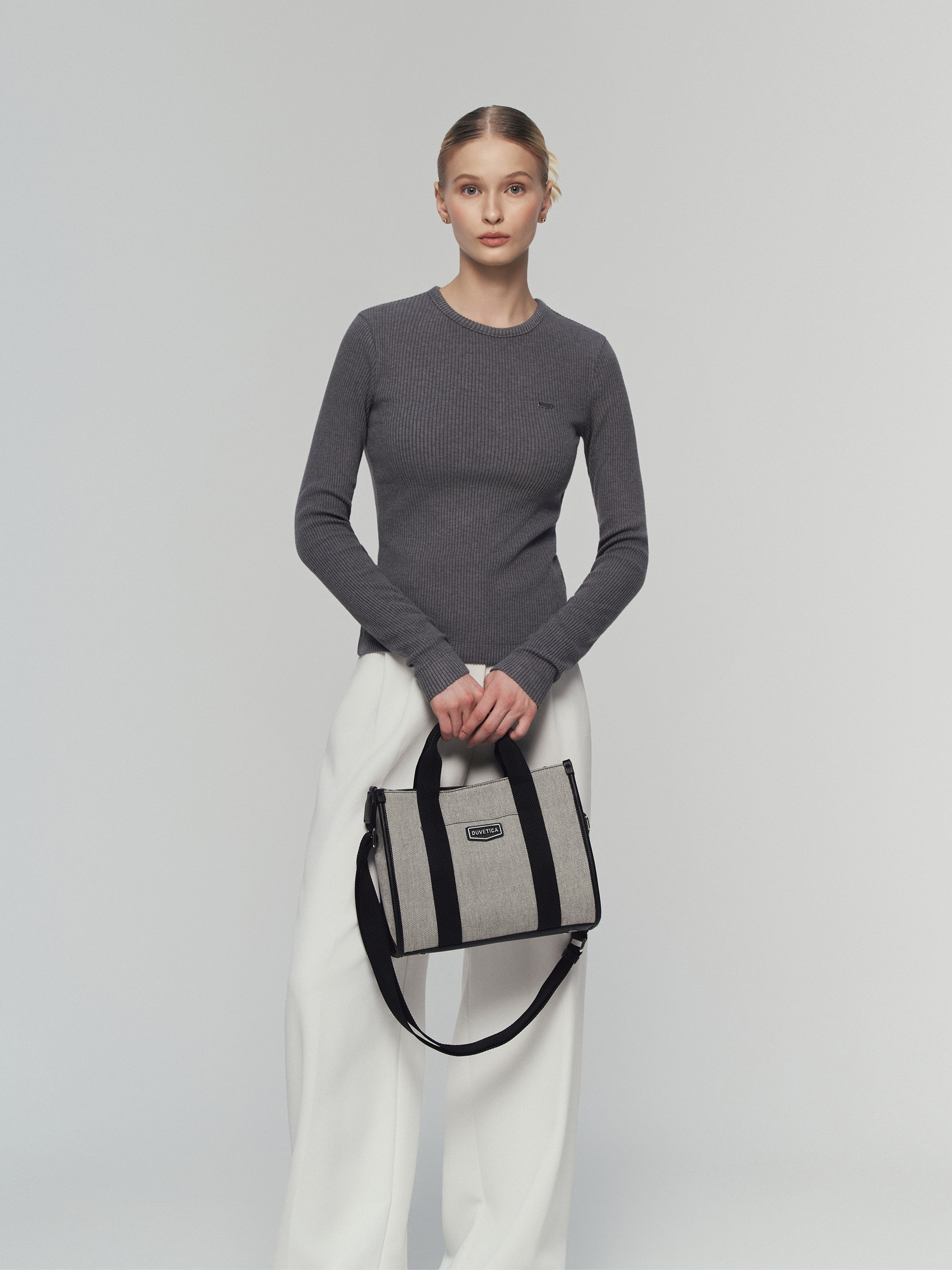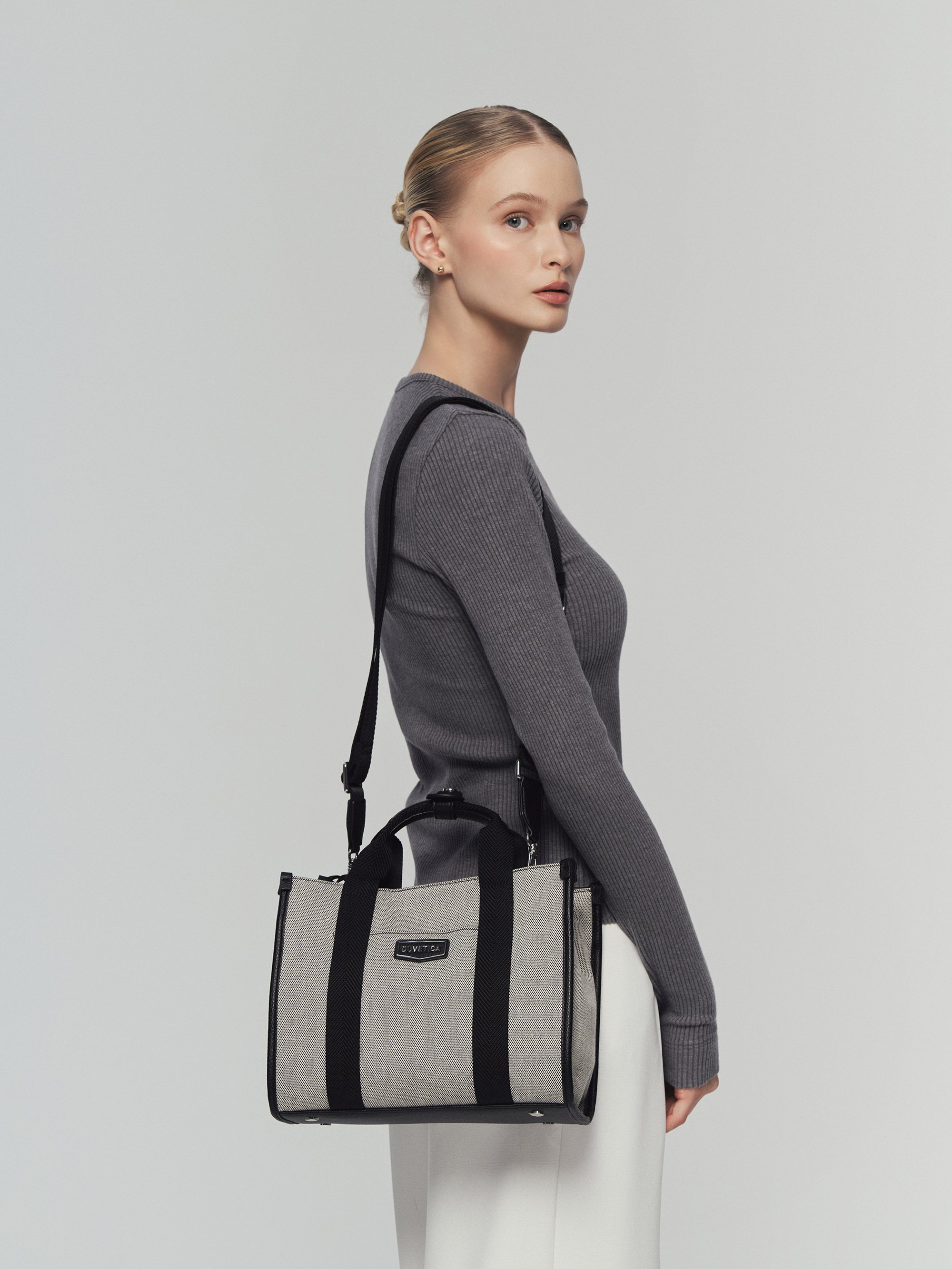 - 캔버스 소재와 웨빙 배색이 조화를 이루는 데일리 오픈탑 토트백