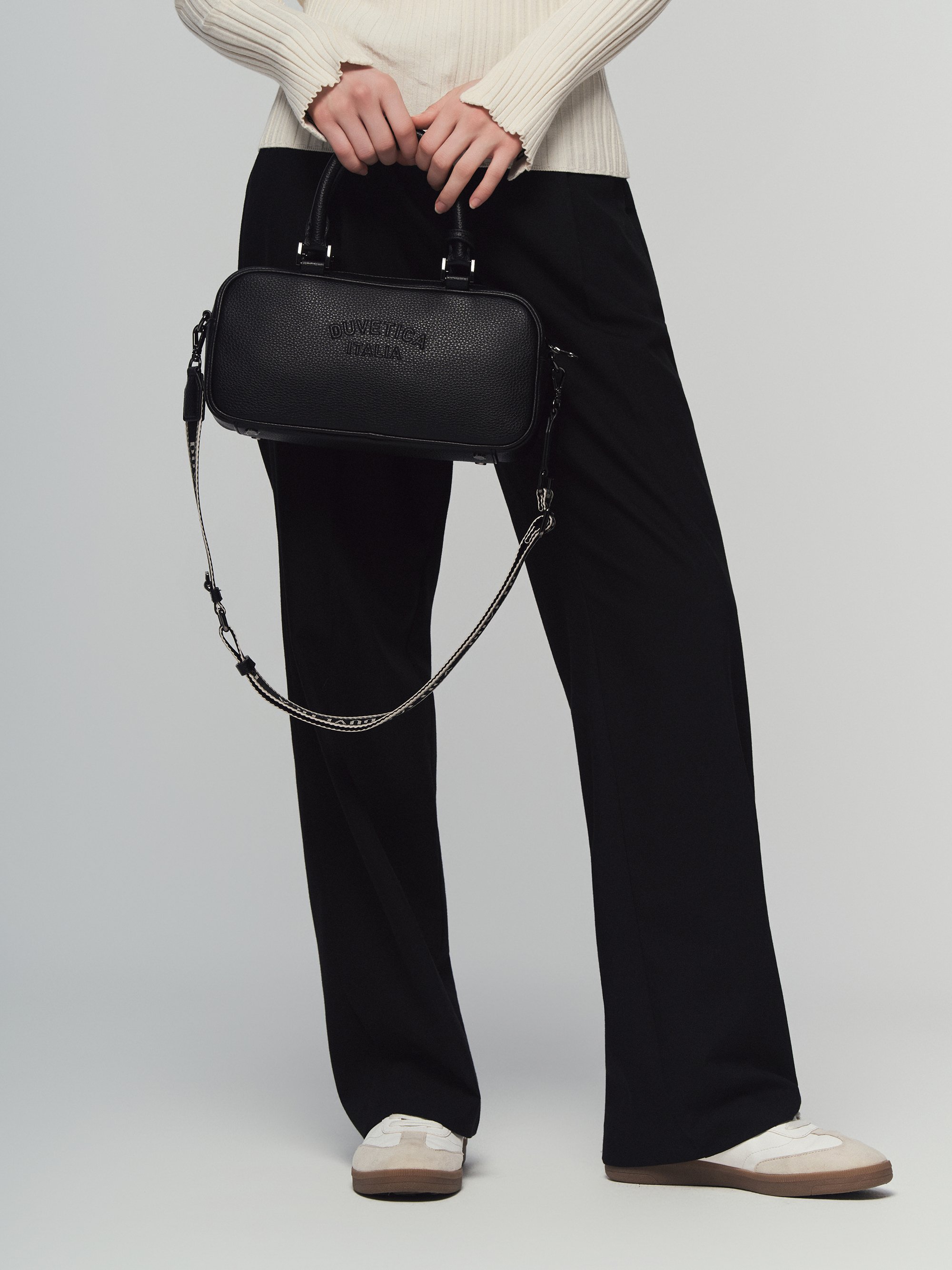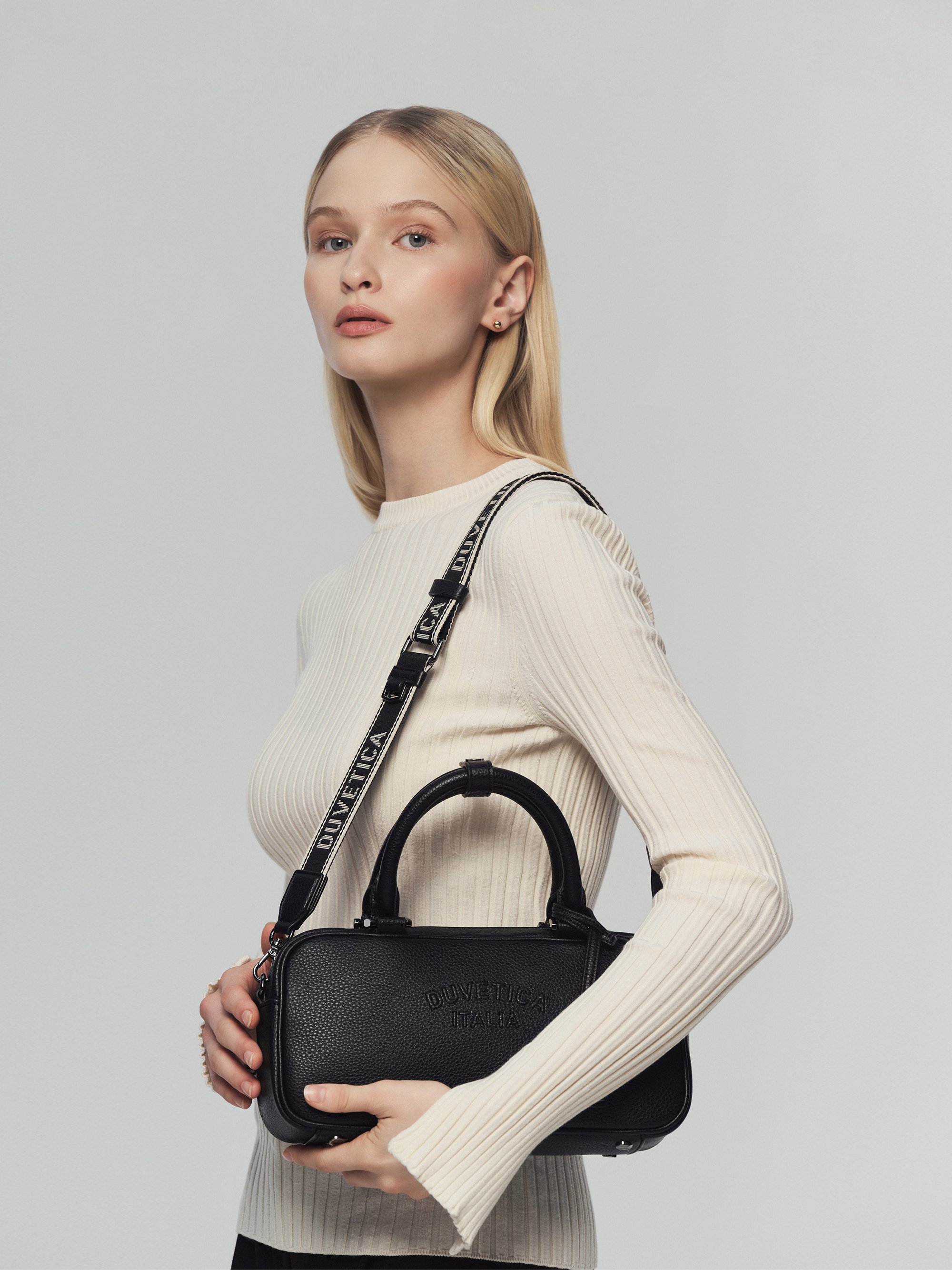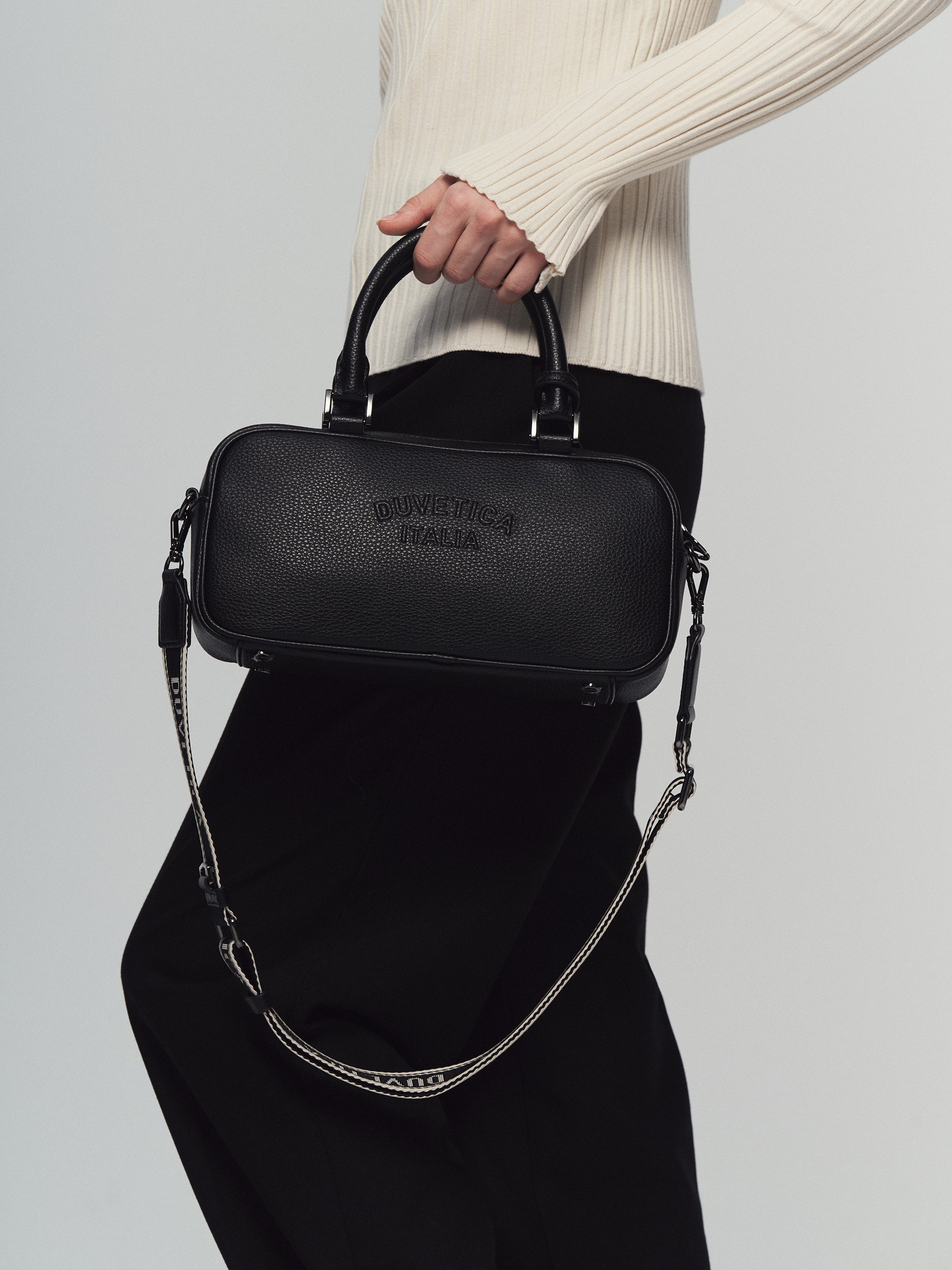 - 탈부착 가능한 웨빙 스트랩과 짧은 손잡이 구성으로 숄더/크로스 투웨이 연출 가능