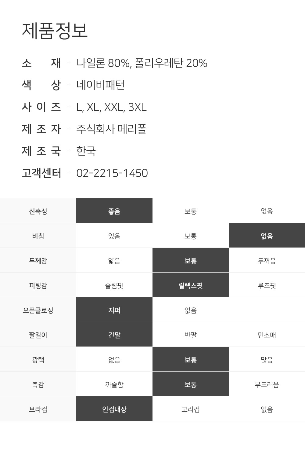 | 소재 | 폴리에스터 80% , 폴리우레탄 20% |