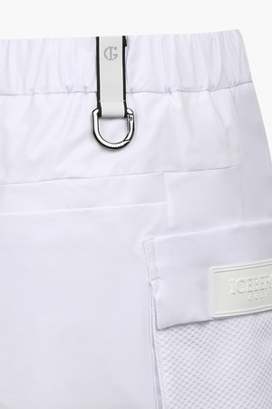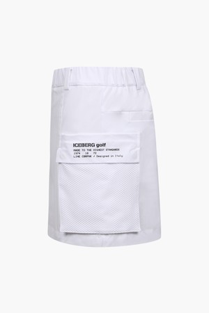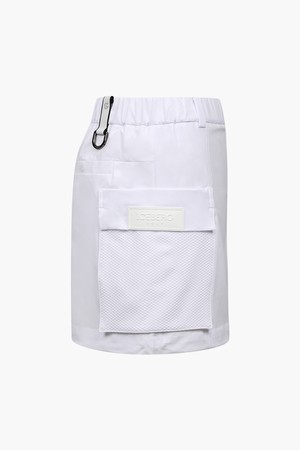 - 우븐 소재와 포켓 부분 핵사곤 메쉬 소재를 사용한 하이브리드 스커트