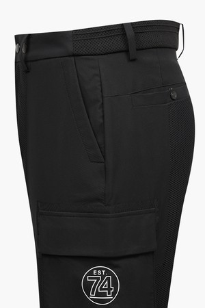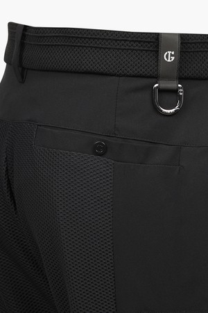 - 스트레치성이 좋은 매쉬와 우븐 소재를 패치 플레이한 남성 하이브리드 하프 조거 팬츠