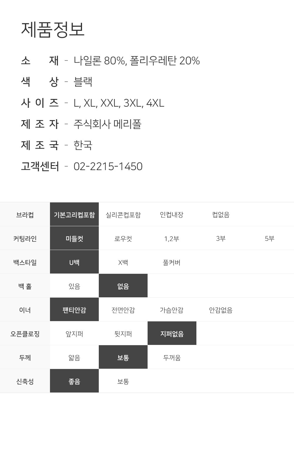 소재나일론 80%, 폴리우레탄 20%
