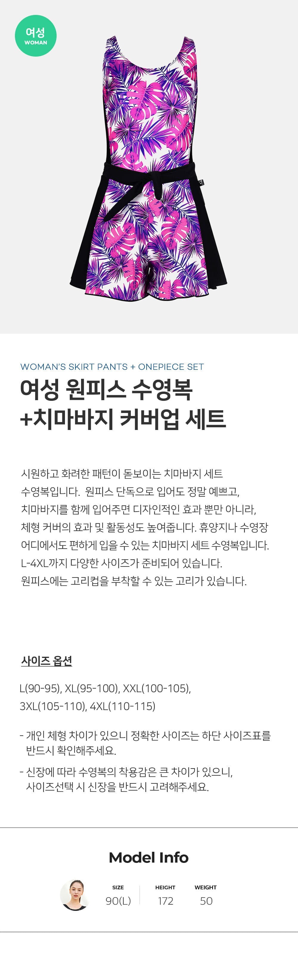 제테스 여성 치마바지+원피스 수영복 세트 L_4A6283X