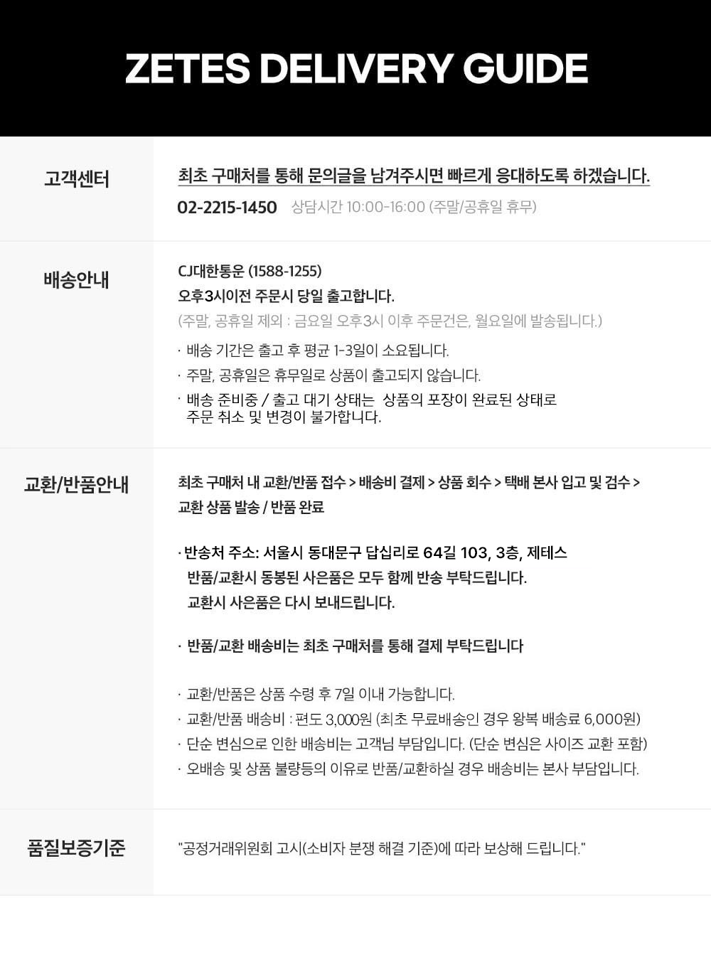 | 품질보증기준 | 공정거래위원회 고시(소비자 분쟁 해결 기준)에 따라 보상해 드립니다. |