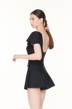 제테스 여성 프릴 반팔 원피스 수영복 +치마바지 커버업 세트 L_4A3270X