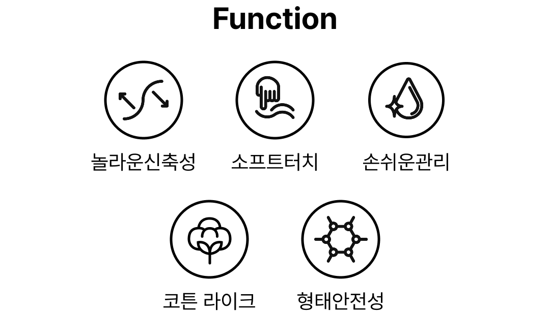 | 소재 | 겉감 레이온(비스코스)10% 겉감 폴리에스터85% 겉감 폴리우레탄5% |